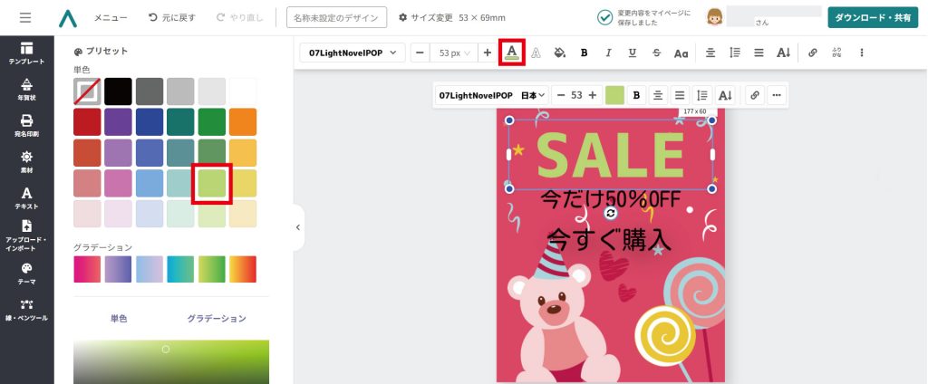 テキストツールを使って、テンプレートデザインに好きなテキストを追加してみましょう