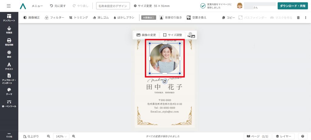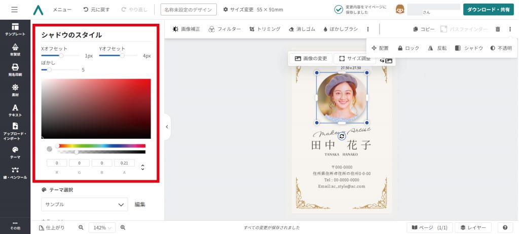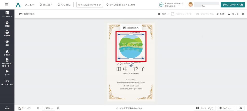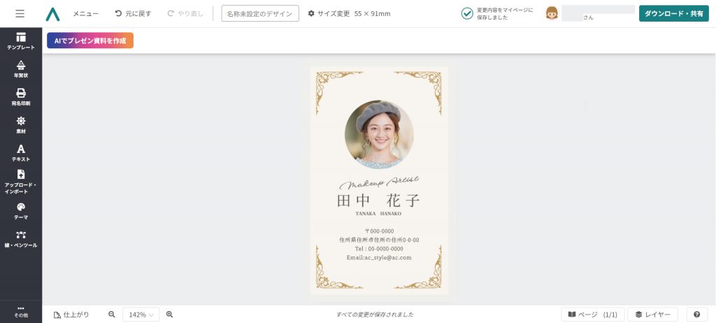 名刺のテンプレートをベースとして使用しましたので、ぜひ参考にしてみてください。