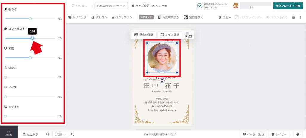 次は、追加した写真の⾊などを調節してみましょう。