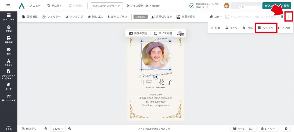 デザインACでは、切り抜いた写真に影(シャドウ)をつけることができます。シャドウを追加することで、立体感のあるデザインになります。