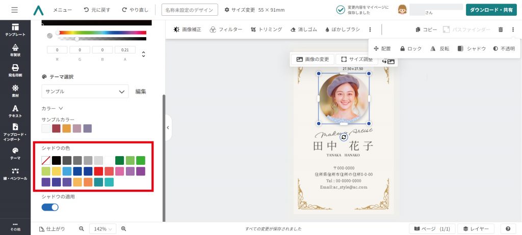 影の色を変えたい場合は、「シャドウの色」からお好みの色を選択しましょう。