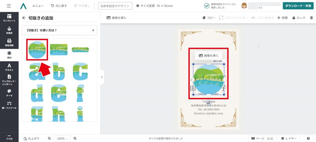 切抜き機能を使⽤して、最初のテンプレートがこのようになりました!
