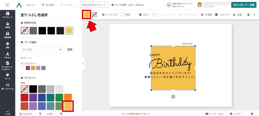 左側のパネルで色を選択しましょう。