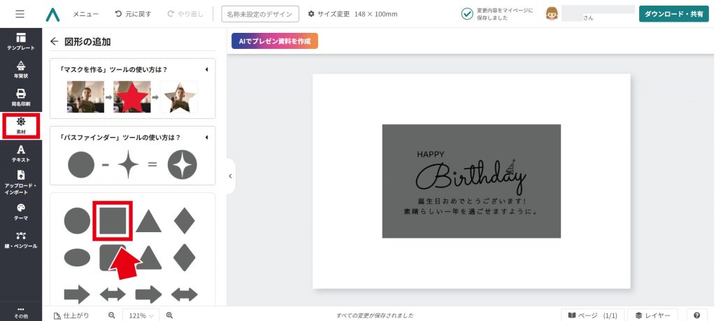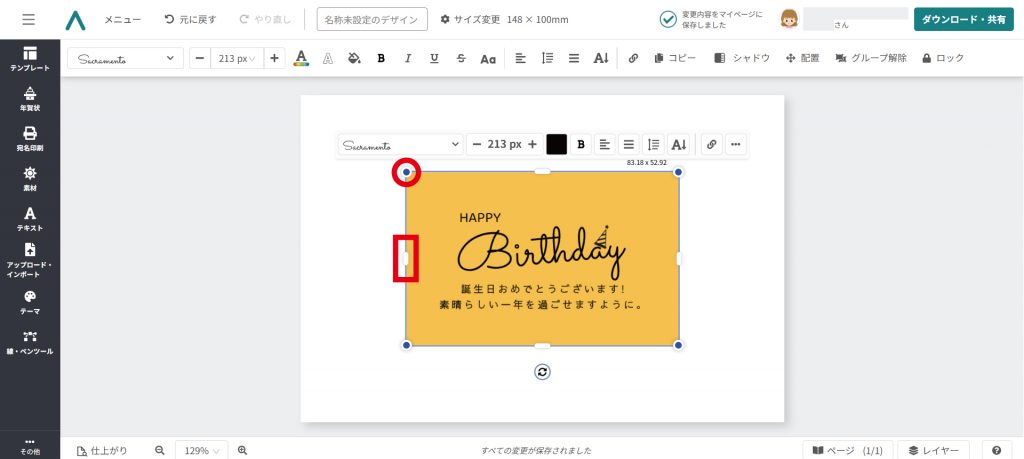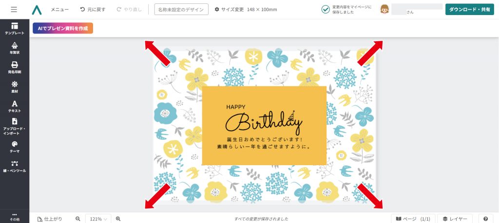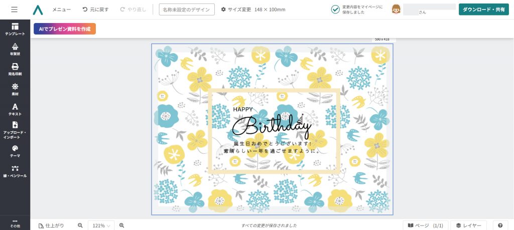 今回は例として、誕生日カードを作成します。