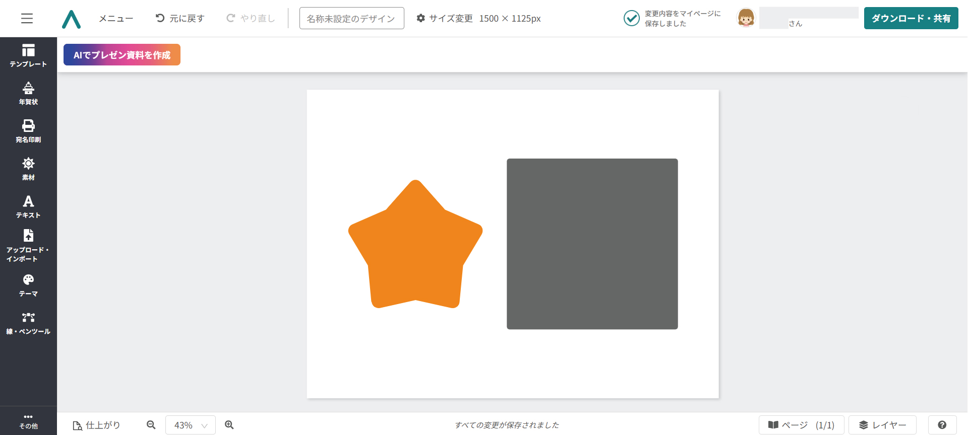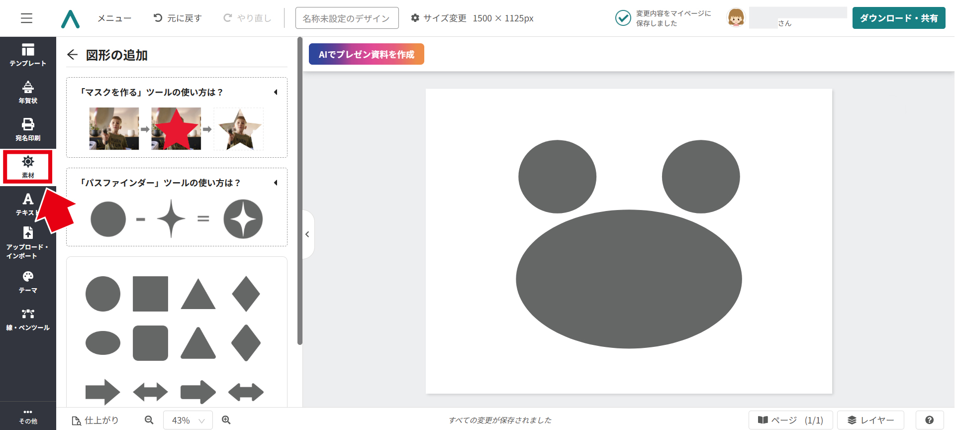 サイドバーの「図形」→「図形の追加」→「もっと見る」から複数の図形をキャンバス上に開きます。