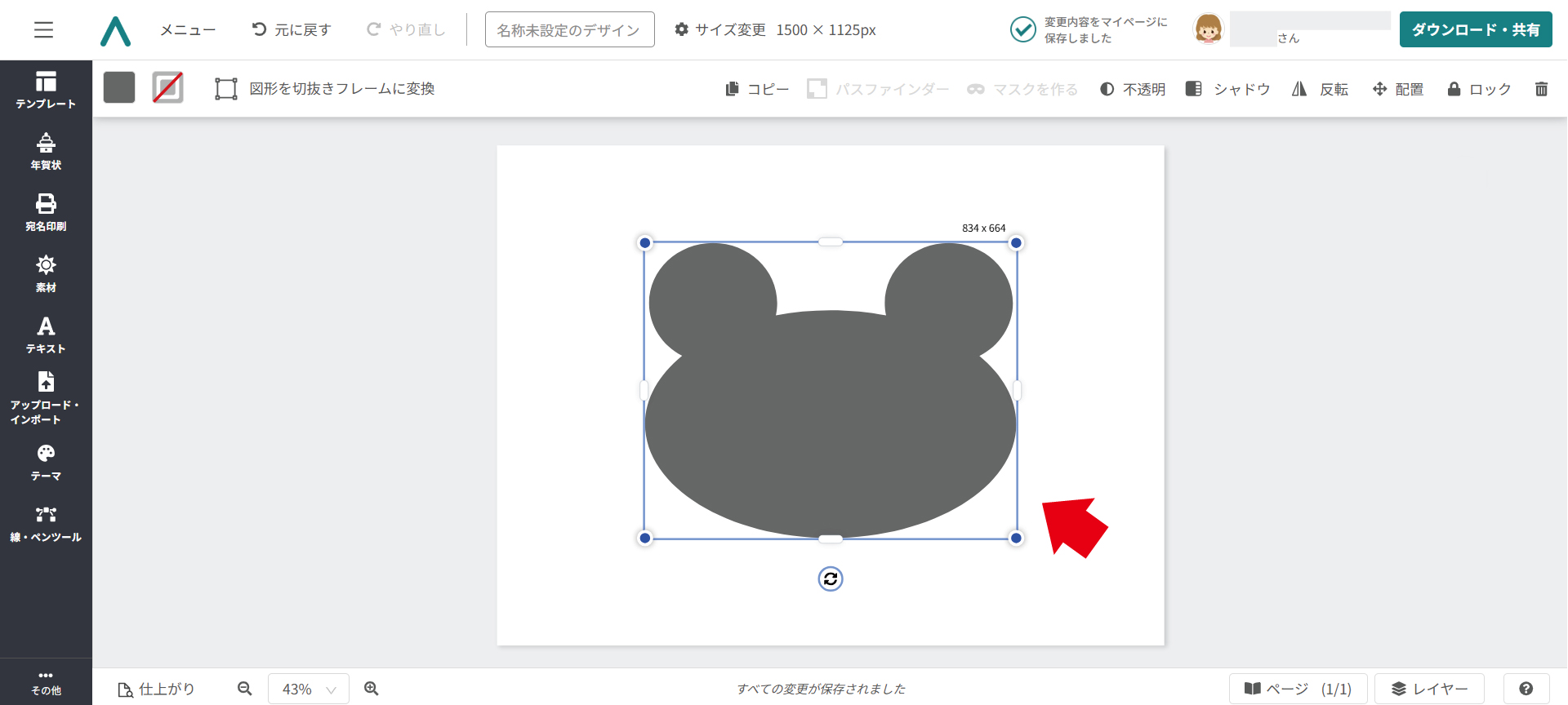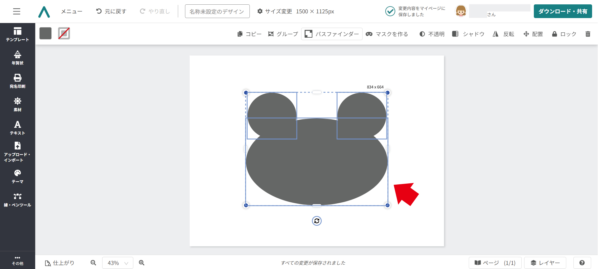 今回は丸を3つ合体させて、クマのシルエットを作成していきます。