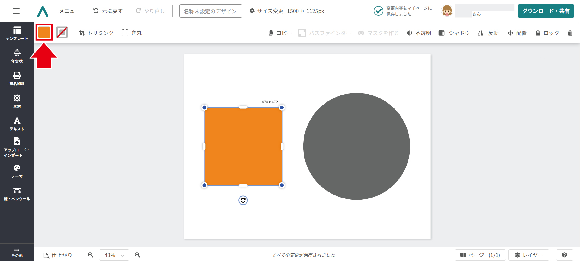 ※作例では分かりやすいように、ツールバーの「塗り」から前面の図形の色を変更しています