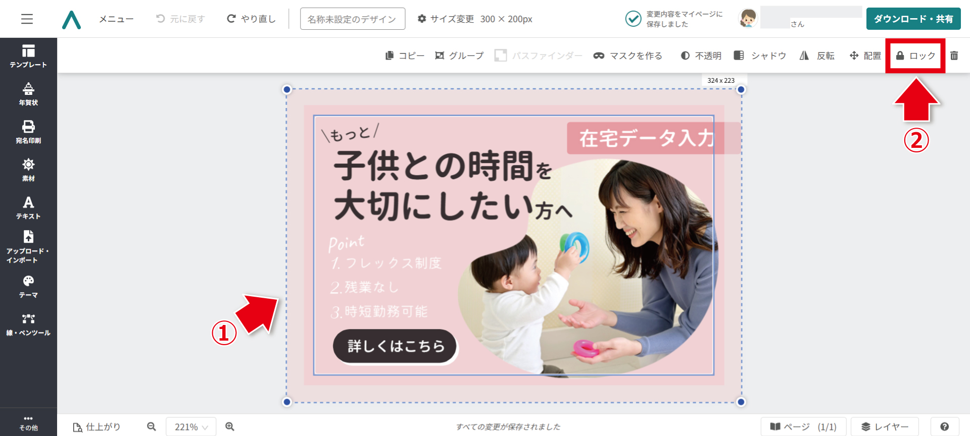 STEP1 テンプレートの背景をロックしよう