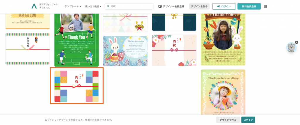 デザインACの検索窓に「のし紙」などのワードを入れて、テンプレートを検索。