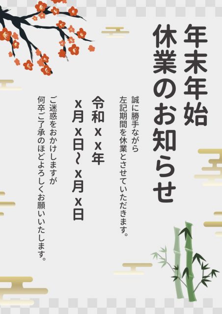 続いては、店頭での掲示にぴったりな年末年始の休業案内ポスターをまとめました。