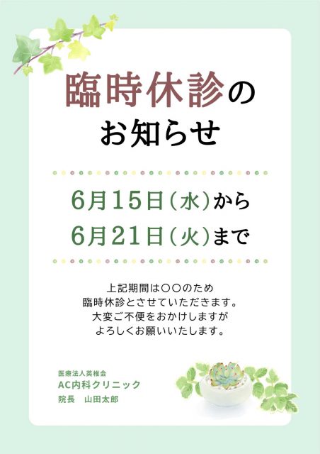 病院や診療所に最適!医療施設向け休診のお知らせ