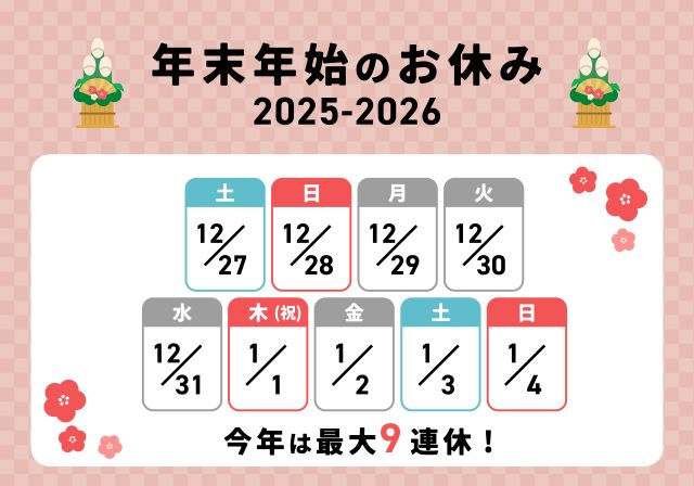 年末年始はどの業界でも特別な期間!お客様への休業日のお知らせも、WebサイトやSNS、店頭でわかりやすく伝えたいですよね。