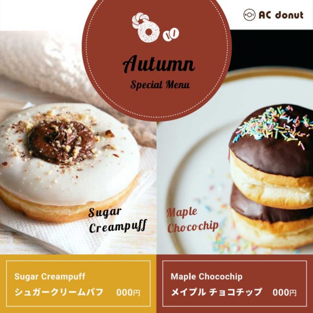 商品やサービスの魅力をしっかり伝えたい方や、販促用バナーを作成したい方におすすめ。飲食・コスメ・ファッションなどさまざまなジャンルに対応していて、写真を入れ替えるだけで印象がぐっと伝わるところが魅力です。