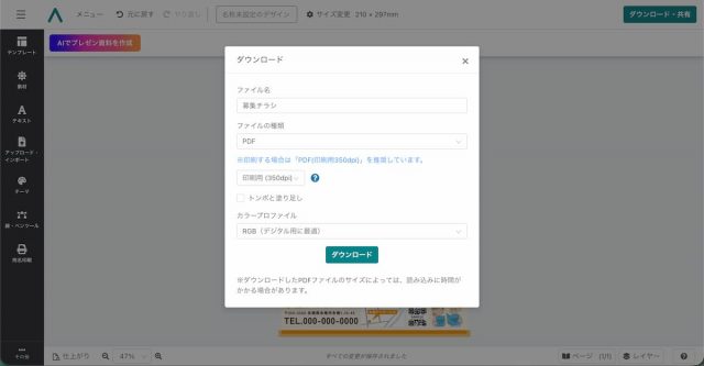 編集が完了したら、PDF 形式でダウンロードしましょう。
