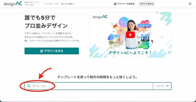 まずは、「デザインAC」にアクセスしましょう。
