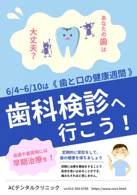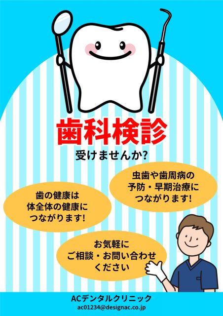 「デザインAC」では、院内掲示やお知らせポスター、定期検診の案内など、歯科医院で活用できるさまざまなテンプレートを多数公開中!
