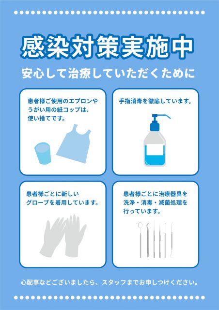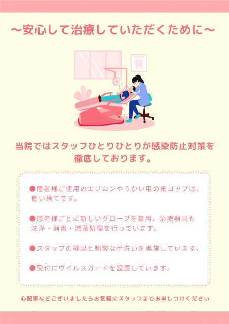 院内には、定期検診や感染対策をはじめ、患者さんへ向けたさまざまな案内が掲示されています。