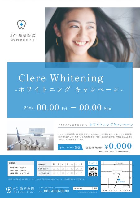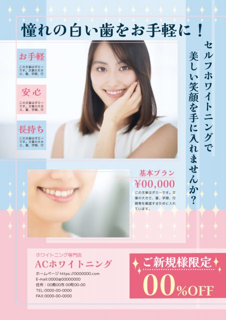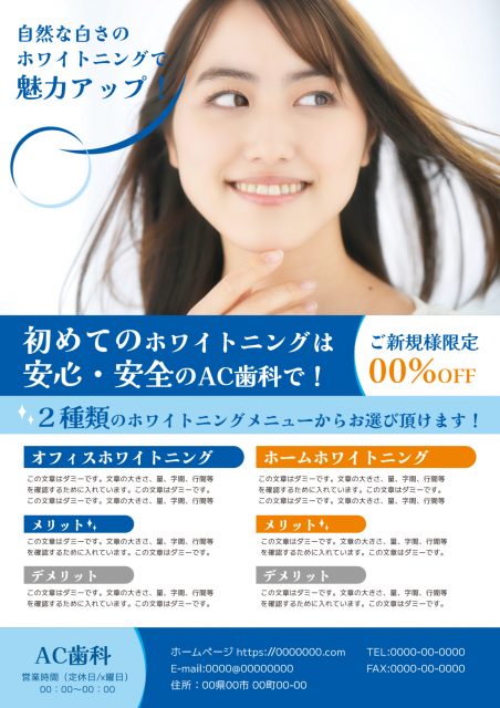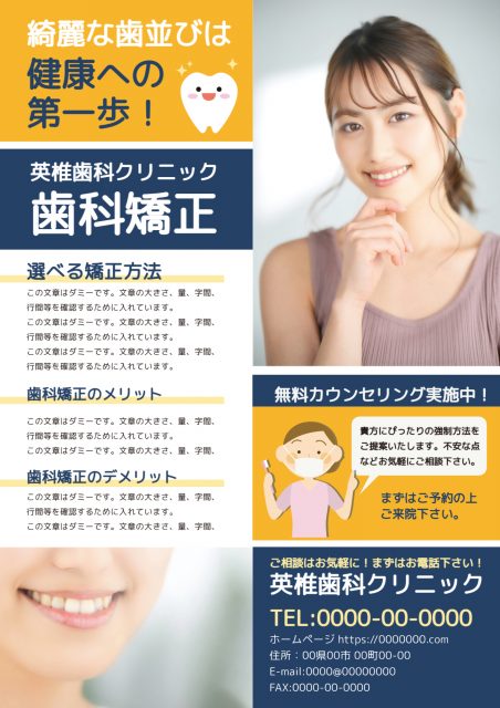 次は、ホワイトニングや歯科矯正など、自費治療の魅力を伝えるチラシデザインを集めました。