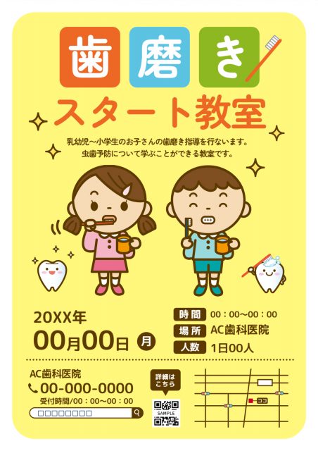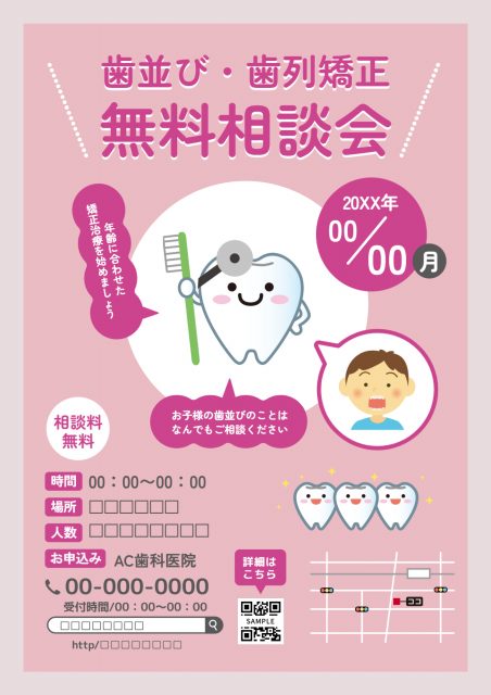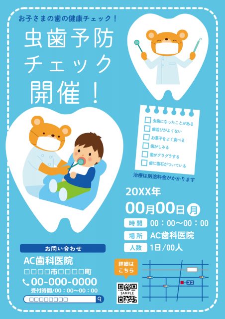 続いては、虫歯予防チェックや無料相談会など、行動につながる案内を伝えるデザインを集めました。