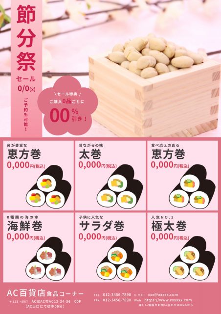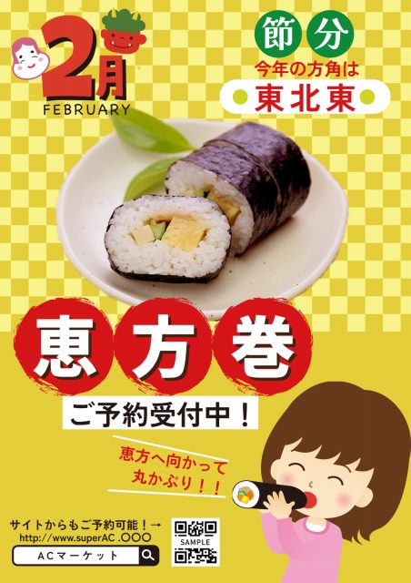 「デザインAC」では、恵方巻をはじめ、季節の催しや売り場告知に使えるデザインテンプレートを多数公開中!