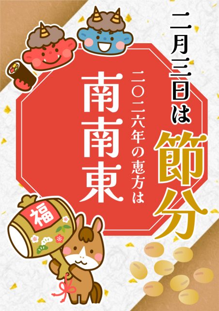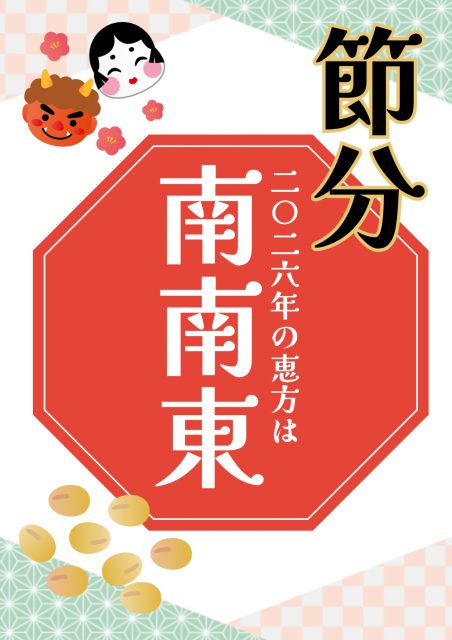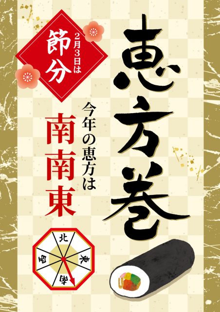 今年の恵方(方角)の案内や売り場の補足など、短期間の告知にも取り入れやすいデザインがそろっています。