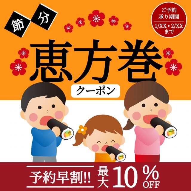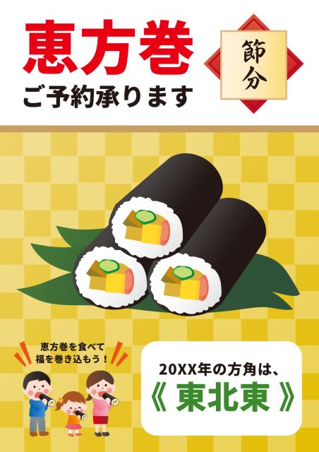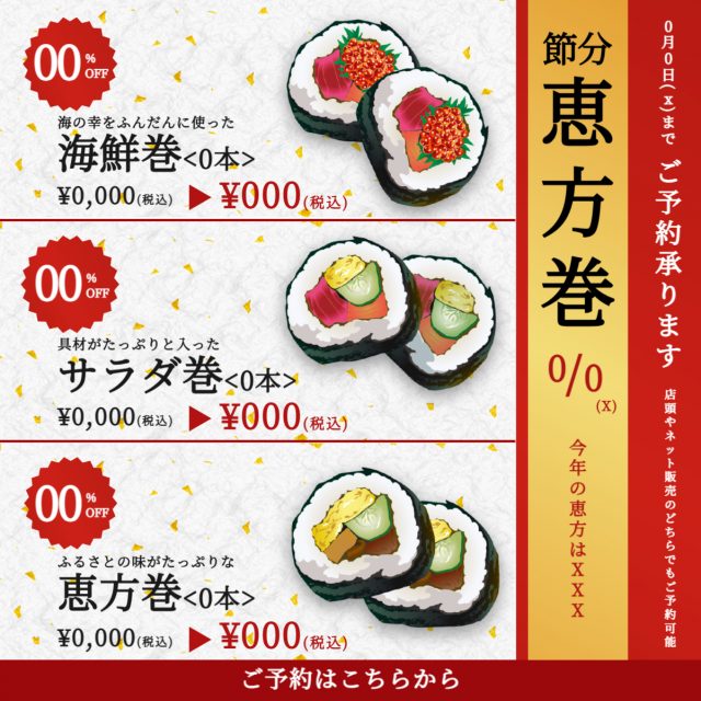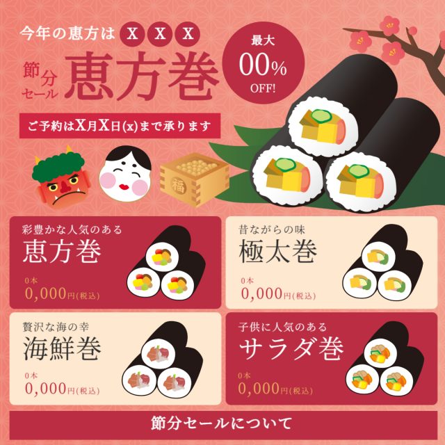 最後は、SNSでの告知やクーポン配布などに使いやすい恵方巻デザインをピックアップしました。
