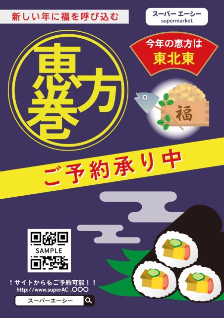 無料で使える「デザインAC」のテンプレートを活用して、恵方巻の売り場づくりや告知を効率よく進めてみてくださいね。