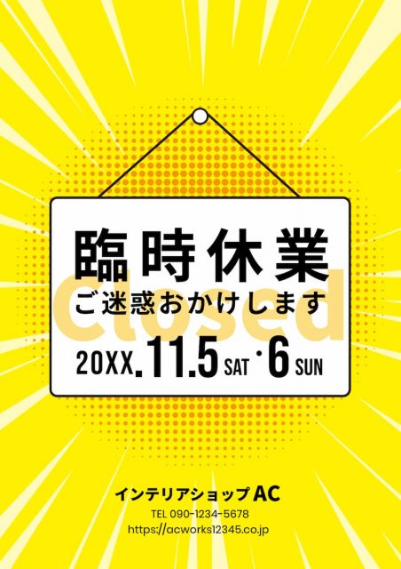 GW期間中は、お客様へ事前に営業時間の変更や休業日を伝えたい場合もあるでしょう。