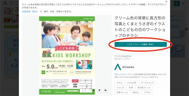 気に入ったテンプレートを選び、「このテンプレートを編集」をクリック。