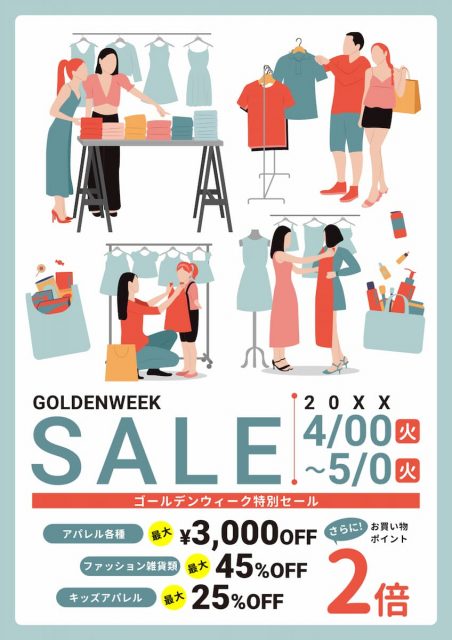 GWチラシは、パッと見て「ゴールデンウィークだ!」と伝わるデザインにすることが大切です。