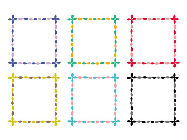 カラフルな刺繍糸で縫い取りをしたような、四角フレームのデザインです。空白部分にメッセージを書いたり、写真を貼っても良いでしょう。