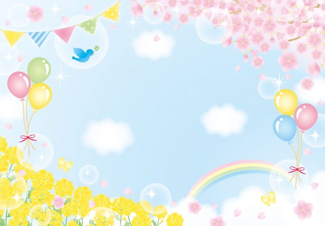 春の高揚感を感じさせるデザインのフレームです。背景が白ではなく青空ですが、明るく開放感のある印象になっています。
