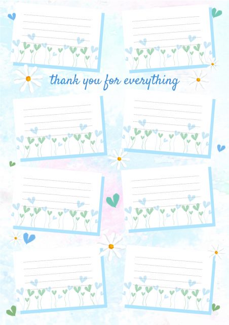 ブルーカラーでまとめられたメッセージカードのテンプレート。編集してメッセージを書いた人の写真を載せても良いですし、そのまま印刷して手書きでもOK!