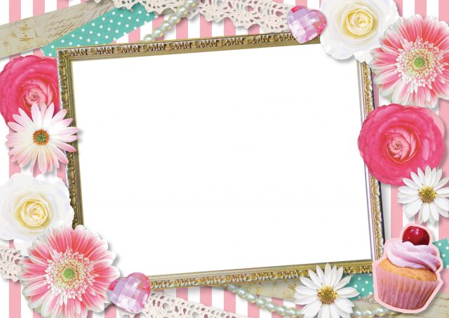 こちらはお花やスイーツの写真をコラージュしたようなフレーム。ガーリーなデザインで、女子会の記念などにもおすすめです。