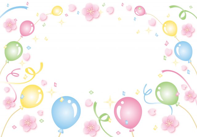 桜吹雪と風船と空のフレーム(無地)