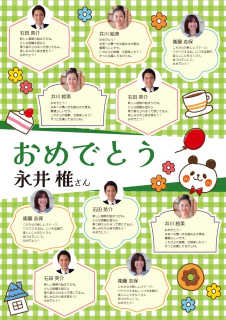 デザインACは、サイト上で編集可能なので、メッセージを書いた人の写真を載せるなど、凝ったデザインの寄せ書きを簡単に作ることができます。