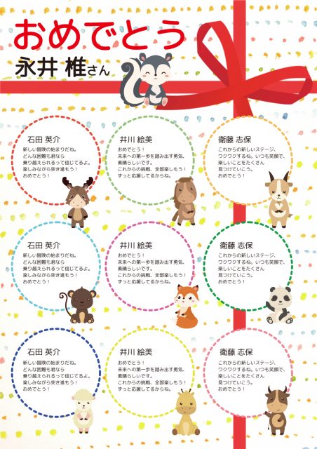 動物のイラストが可愛らしいテンプレート。お子さんの誕生日や卒園などにも利用できそうなデザインです。