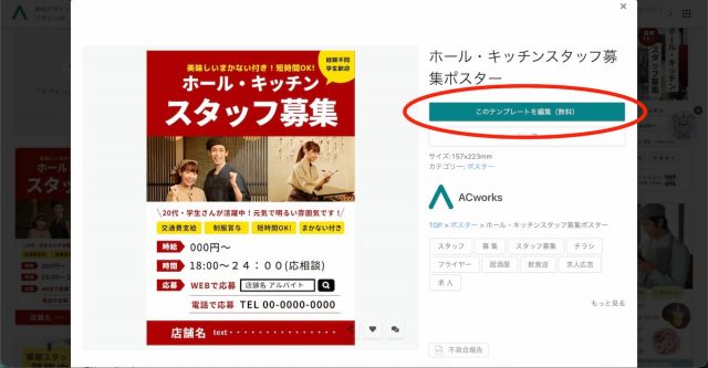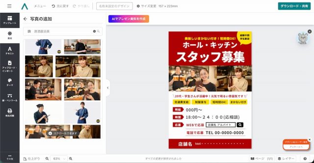 デザインAC を使えば、デザイン初心者でも簡単にスタッフ募集チラシが作れます。