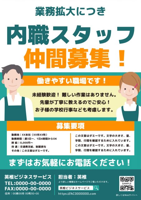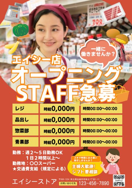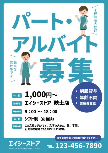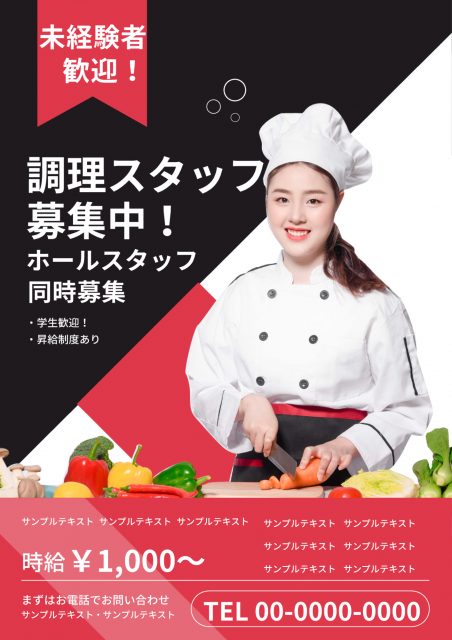 それでは、スタッフ募集・求人チラシ向けのおすすめデザインテンプレートをいくつかご紹介いたしましょう。