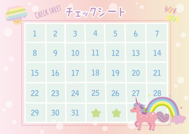 パステルカラーでユニコーンのイラストを使ったチェックシート