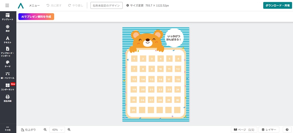 テンプレートの編集が終わったら、ダウンロードと印刷を行いましょう。
