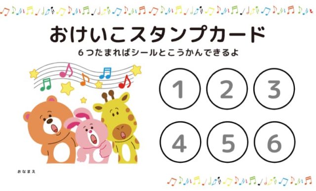 動物が歌うイラストのスタンプカードです。他のおけいこにも使えそうですね。