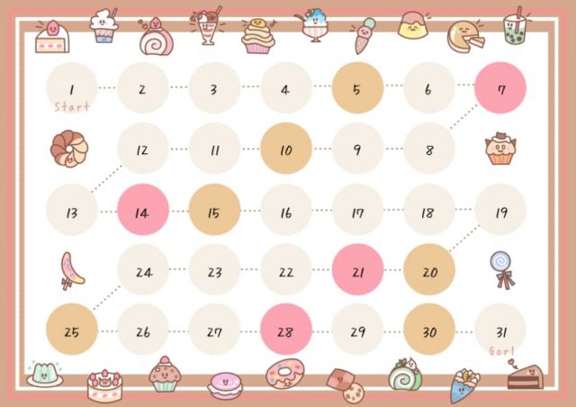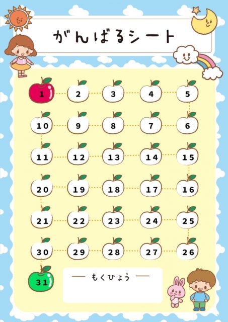 こちらのシートは番号が振ってあり目標を書く欄もあるため、例えば「夏休みの勉強1か月集中!」などに役立つでしょう。