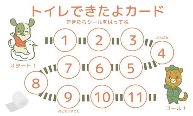 こちらはトイレトレーニングのスタンプカード。お子さん自身がシールを貼るようにすれば、意欲も違ってきそうです。