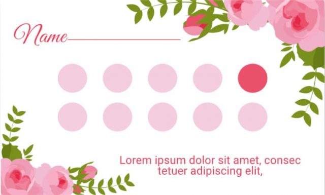 ピンクベースのフェミニンなデザイン。編集して名前を入れたり、スタンプのマスを増やすことも可能です。