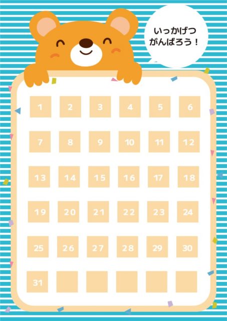 ある程度自分でできるようになったら、このようなシートで1か月チャレンジをしてみても良いでしょう。