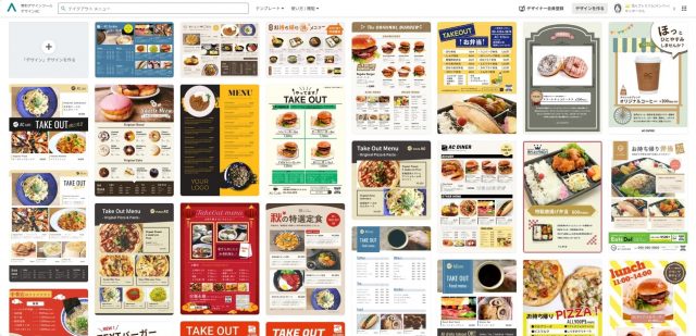 デザインAC」では、テイクアウトメニューに活用しやすいテンプレートを多数公開中!