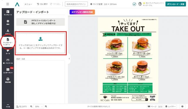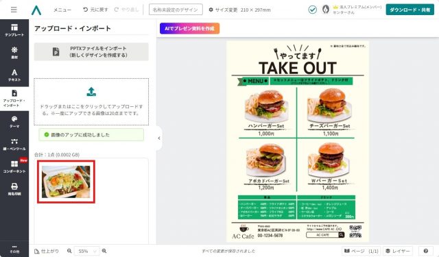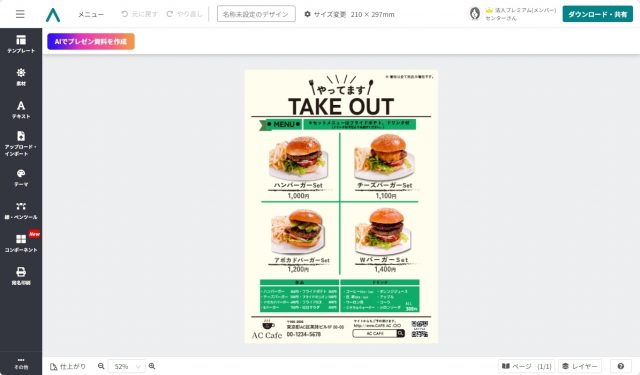 印刷用もSNS用も!デザインACでテイクアウトメニューを無料作成
