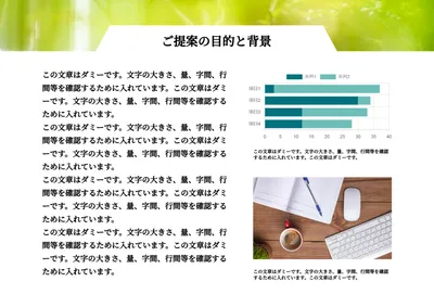 木漏れ日にあたる女性の写真を大きく使ったPROPOSALのテンプレートデザインを編集・オリジナルデザインが作成できます。