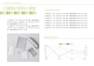 上と下に緑色のグラデーションの縁取りがある上品なPROPOSALのテンプレートデザインを編集・オリジナルデザインが作成できます。